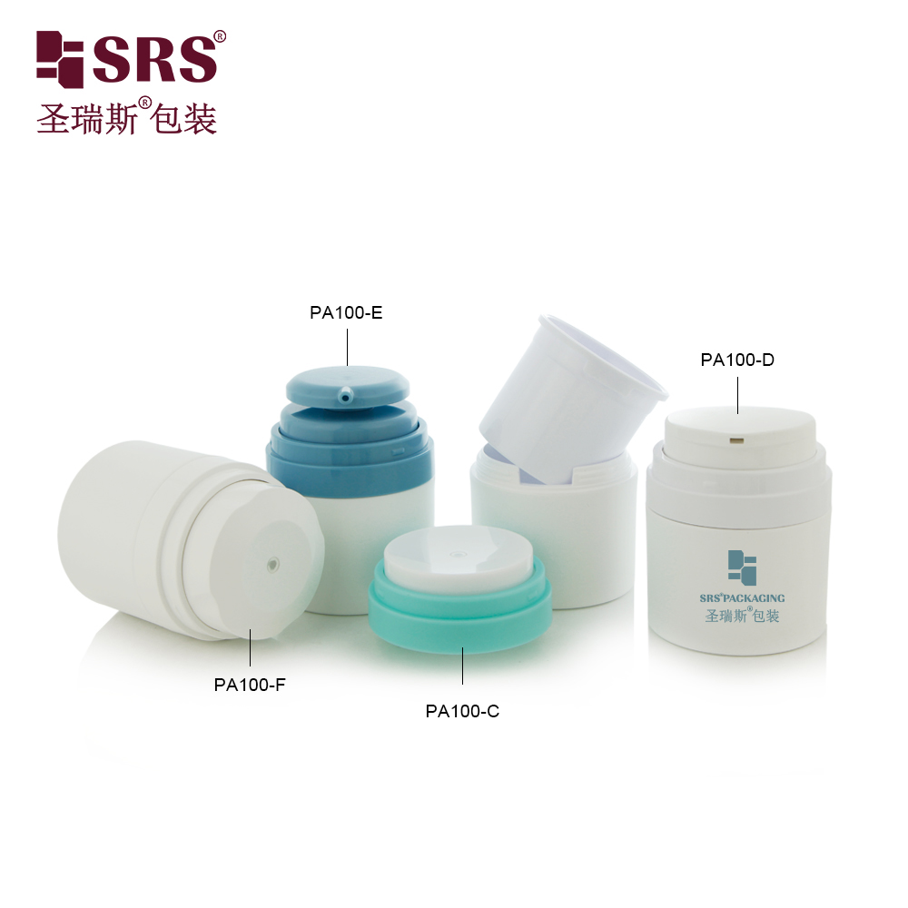 PA100-C is double wall replaceable airless pump cream jar,all parts are injected.It has 50ml volume for your choice.Color and print can be customized.