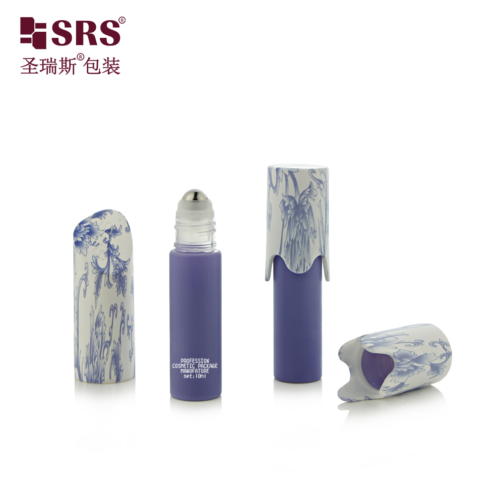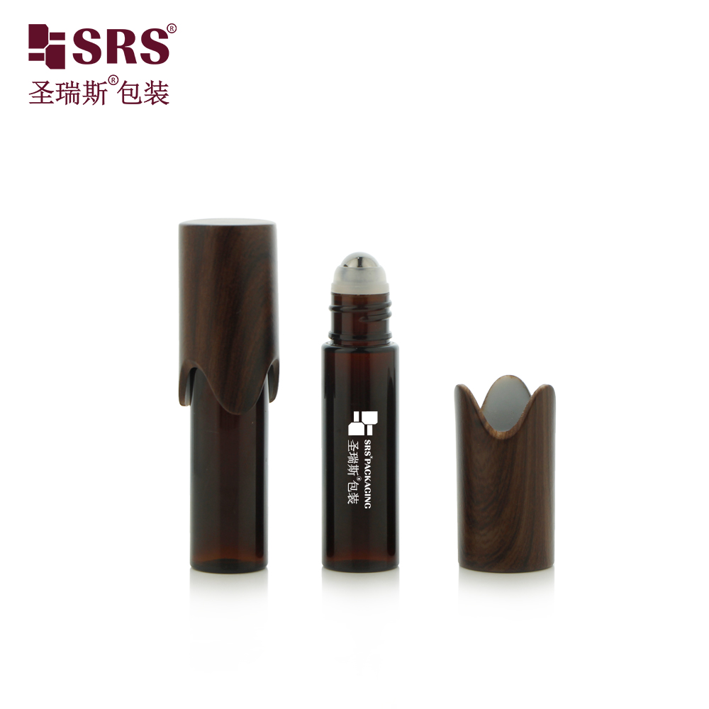 Unique Cap Roll on Bottle Cosmetic Packaging 10ml Amber PET Roller Travel Bottle